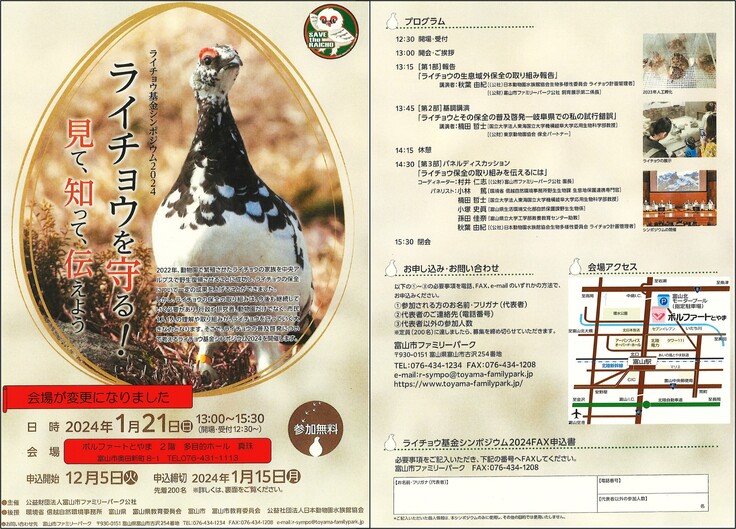 ライチョウ基金シンポジウム2024 ●要申込● ▶ 富山市ファミリーパークのページへ