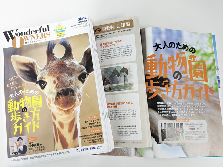 本日,「わんだふるオーナーズ」(2014年冬号)という,賃貸・お部屋探しのCHINTAIさんの冊子が届きました。「大人のための動物園の歩き方ガイド」という特集で,よこはま動物園ズーラシアが大きく取り上げられています。ズーラシア園長&日本動物園水族館協会会長の村田浩一様が監修されています。村田様には,このクラファンにも応援コメントをいただいています。