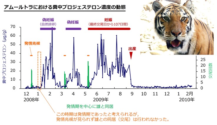 [引用]松原香菜,楠田哲士.2019.トラにおける糞中ホルモン動態を指標とした妊娠判定実施例(2002~2018年).第3回野生動物保全繁殖研究会大会講演要旨集.