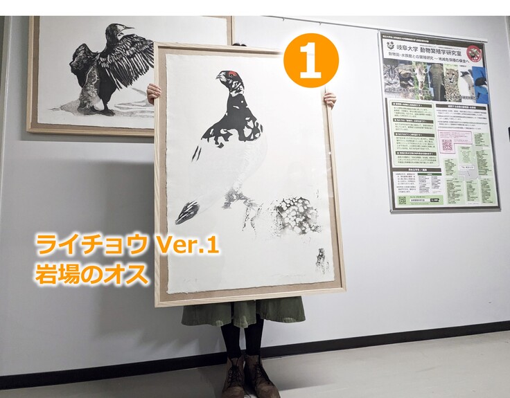 岐阜と言えば・・・岐阜大学と言えば・・・ということで,秘蔵のライチョウとウミウの木版画をギフト(返礼品)に追加しました。もちろんこちらも木版画家の務川めぐみさんの作品です。巨大な作品なので,すごい迫力です!限定です。