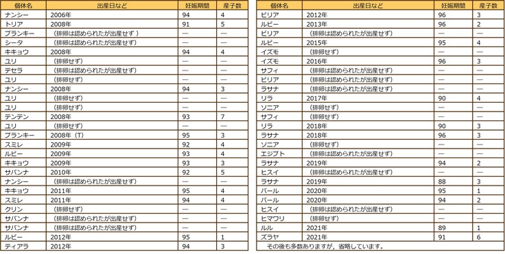 動物繁殖学研究室でのこれまでのチーターの妊娠判定例(一部)