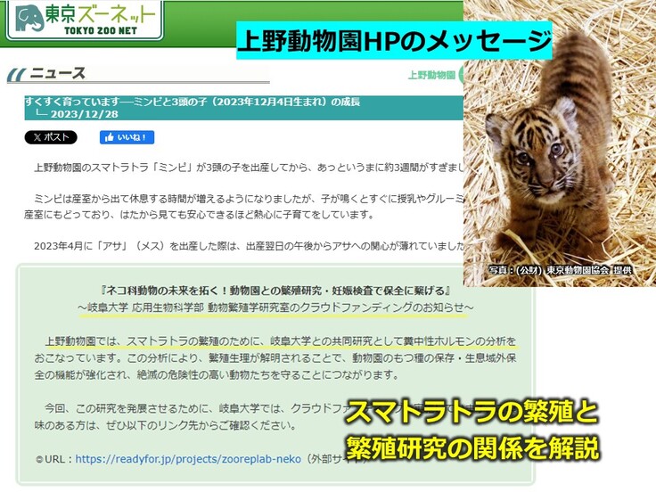 ●例えば,ある動物園では,HP上で出産のリリース時に研究連携のことやクラファンの紹介をしてくださっていました。
