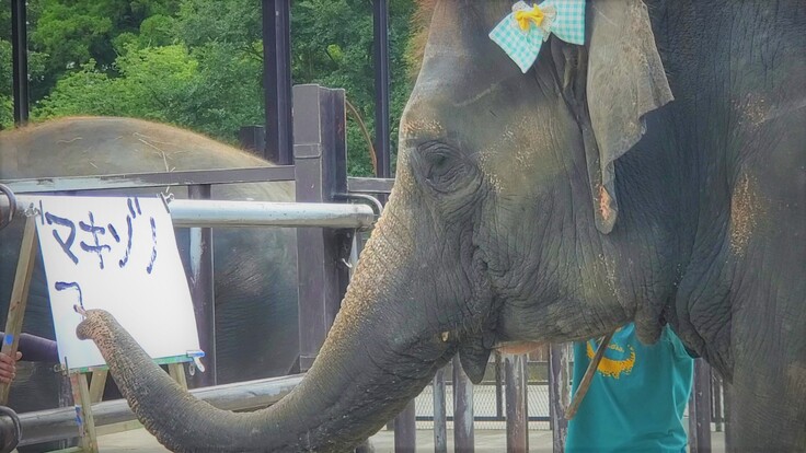 作品は、ゾウと人との信頼関係の証でもあるのです。
