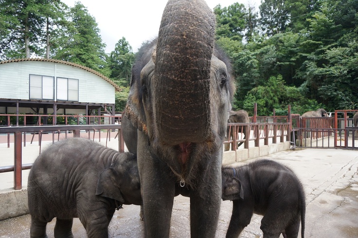 自然界では、ゾウは10頭~20頭位のメスゾウを中心とした群れで暮らし、群れの子ゾウは、メスゾウたちで協力して子育てをします。子ゾウは2歳頃まで母ゾウからお乳を吸って成長します。若いゾウは、群れの中で先輩のゾウたちの出産や子育てを見ながら学んでいきます。