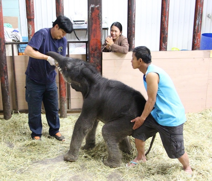 しかし、本来ゾウは双子を出産することは稀で、代理母のプーリーからの母乳だけでは栄養が不足する可能性が考えられました。そこで、結希には「エレファントミルク」を補助的に飲ませてきました。おかげで結希はここまですくすくと成長しました。