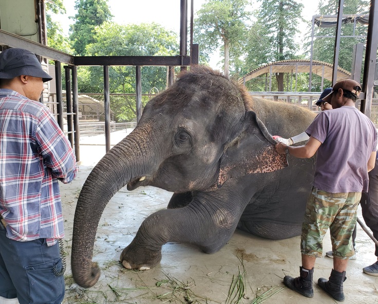 当園では、応援メッセージを頂いている岐阜大学応用生物科学部 教授 楠田 哲史先生のご協力のもと、10年程前からゾウの繁殖時期の推定、妊娠判定、出産時期の目安の一つとして「プロジェステロン血中濃度測定」をしています。