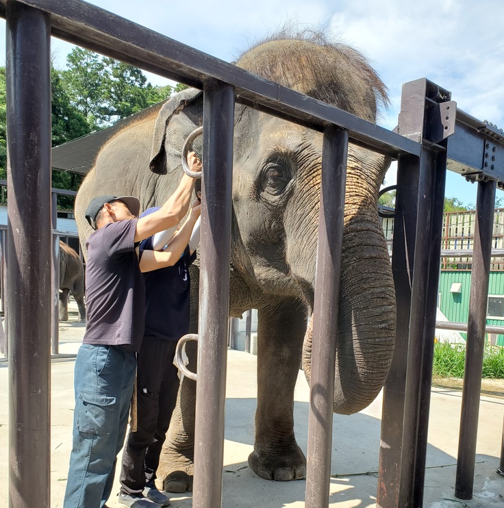 母ゾウは出産までの日々をいつも通りの日常を過ごし、仲間のゾウに囲まれながら、出産を迎える事が一番の安産であり産後も落ち着いて赤ちゃんをしっかり育ててくれるのではないかと当園は考えています。