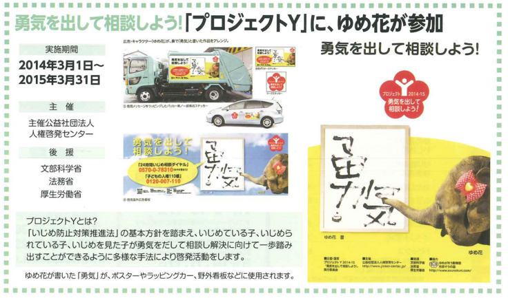 いじめられている子、いじめている子が勇気や優しい心を持てるように、ゆめ花が、イメージキャラクターを務めました。