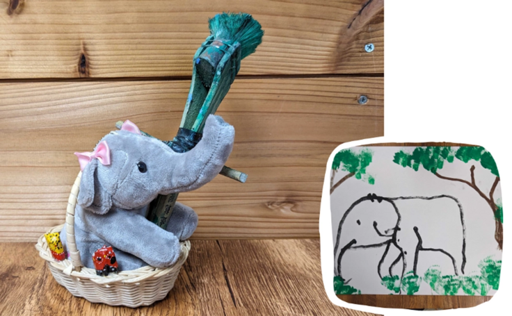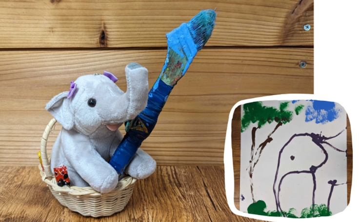 ↑もも夏☆お絵かきで愛用している筆&ぞうさんのお絵かき原画&ボールチェーンセットhttps://readyfor.jp/contributions/zounokuni2023?reward_detail=&select_id=308912