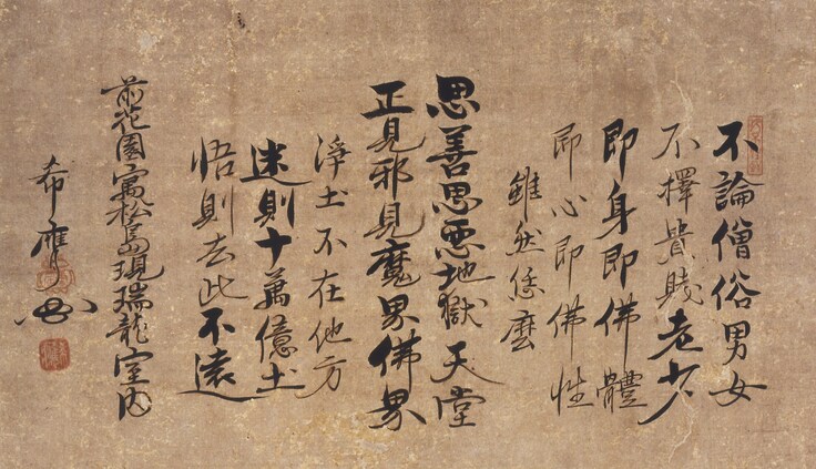 「浄土は他方に在らず 迷えば則ち十万億土 悟らば則ち去此不遠(こしふおん)」は雲居禅師の代表的な教え。「去此不遠」は観無量寿経に見られ言葉。此土浄土の思想は宋末の雲棲珠宏禅師の他、多くの禅僧によって説かれたものである。雲居国師の生涯に触れるとこの教えが観念的なものでは無く、坐禅による体験に裏付けられたものであることが理解出来ます。