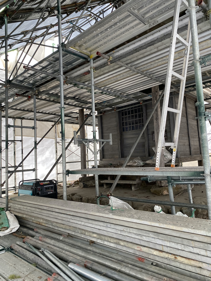 今回の工事は古いお堂を解体し、損傷の酷い部材を新しい材料で補うと共に、経年劣化で歪みが生じたお堂の姿を整える内容となっています。