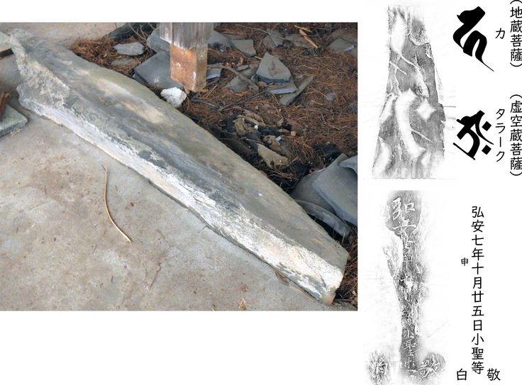 修繕工事に際しては、基礎から弘安七年の板碑が発見されるなど嬉しい誤算があり、それに伴う