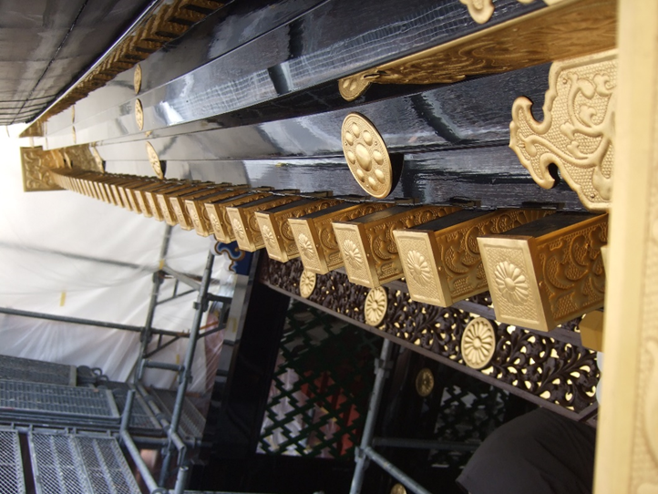 瑞鳳殿本殿は平成13年に大改修を行いましたが、その後21年が経過し、彩色のくすみや黒漆の退色、錺金具の金箔剥離など劣化が著しい状態となっております。