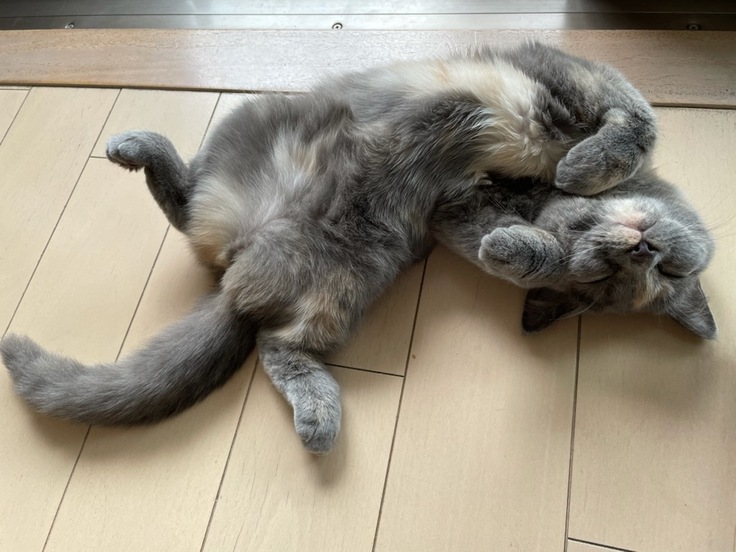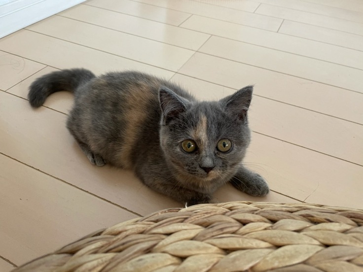 7月28日、ペットショップで小さな子猫と出会いました。ほかの猫ちゃんたちと違い、近づいてくるわけでもなく、こちらを見ながらベッドをふみふみしている猫ちゃんに、目がくぎ付けになりました。抱っこをさせてもらうと、グルグルと喉を鳴らし、ぴったりとくっついてくる姿に、私も娘もメロメロになりました。家に帰ってからも、その猫ちゃんのことが忘れられず、娘の誕生日も近かったことから、8月3日、娘の誕生日の記念に大事な家族の一員に迎え入れました。その日のうちに、『ずん』と娘が命名しました。