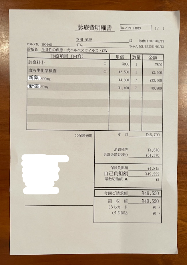 *随時経過報告、治療費の明細を掲載させていただきます。