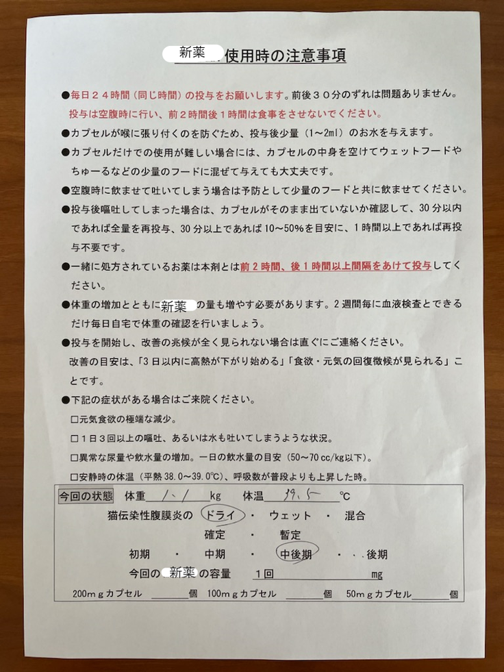 ※このプロジェクトは、FIP(猫伝染性腹膜炎)を治療するための日本未承認薬の効果・効能を広告・宣伝するものではありません。私たち家族の自己責任と判断において、投与が必要と考えておりますが、全ての猫ちゃんに有効であるという趣旨ではありません。また、ご迷惑をおかけしないよう、動物病院のお名前は伏せさせていただいております。